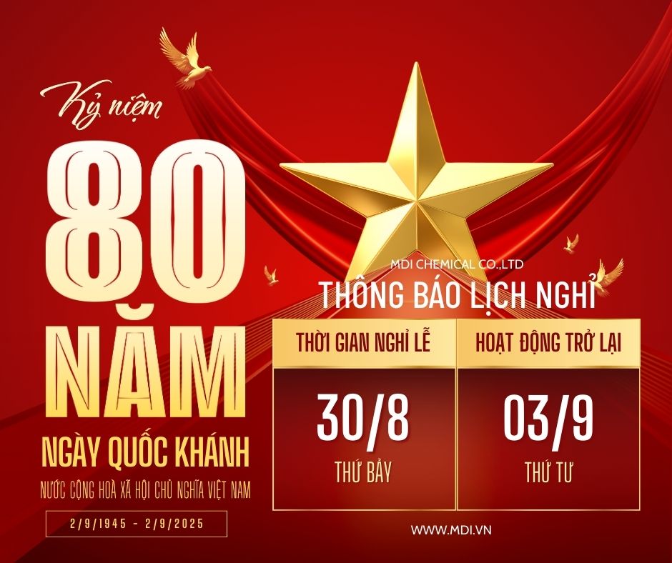 MDI CHEMICAL - THÔNG BÁO LỊCH NGHỈ LỄ QUỐC KHÁNH