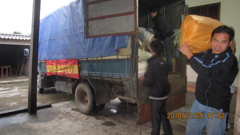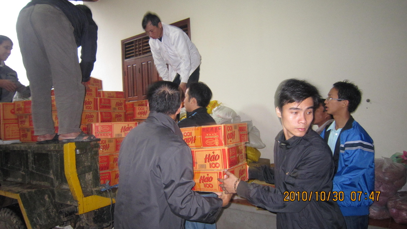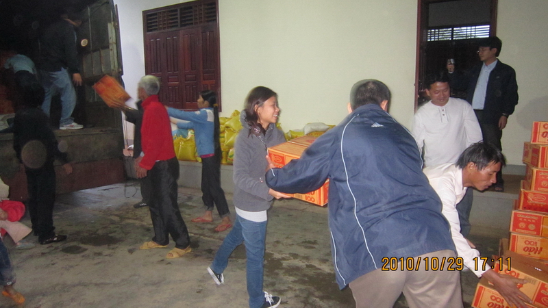 Được sự hỗ trợ của bà con giáo xứ hơn 2 tấn gạo, 300 thùng mì tôm cùng bột canh, bột giặt, sữa,lạc, cùng rất nhiều quần áo đã được nhanh chóng chuyển xuống và sắp xếp gọn gàng tại điểm tập kết.