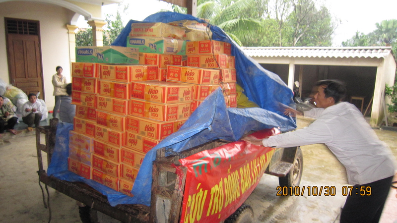 Từng xe kéo chất đầy hàng, rời khỏi nhà thờ mang những phần quà đầy ý nghĩa đến cho bà con khắp giáo xứ. Từ mọi nẻo đường, bà còn vui mừng đi tới các nơi nhận hàng cứu trợ. Thiết nghĩ những món quà không nhiều nhưng lại vô cùng ý nghĩa, đó không chỉ là những món quà cứu đói mà còn là những món quà ân tình của toàn thể người dân Việt Nam nói chung cũng như Công ty MDI và bạn bè nói riêng dành cho Miền Trung, cho Quảng Bình trong cơn bão lũ.