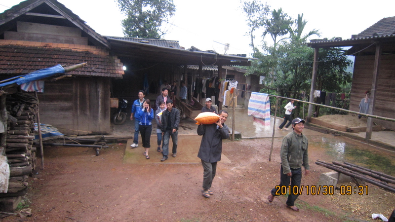 Sau khi chuyển hàng cho các giáo họ, cả đoàn đã lên đường đi thăm một số gia đình gặp khó khăn và gia đình có người bị nạn trong lũ. Đường trơn, lầy lội nhưng cả đoàn ai cũng nhiệt tình mang quà, hàng đến thăm hỏi các gia đình khó khăn trong xã.