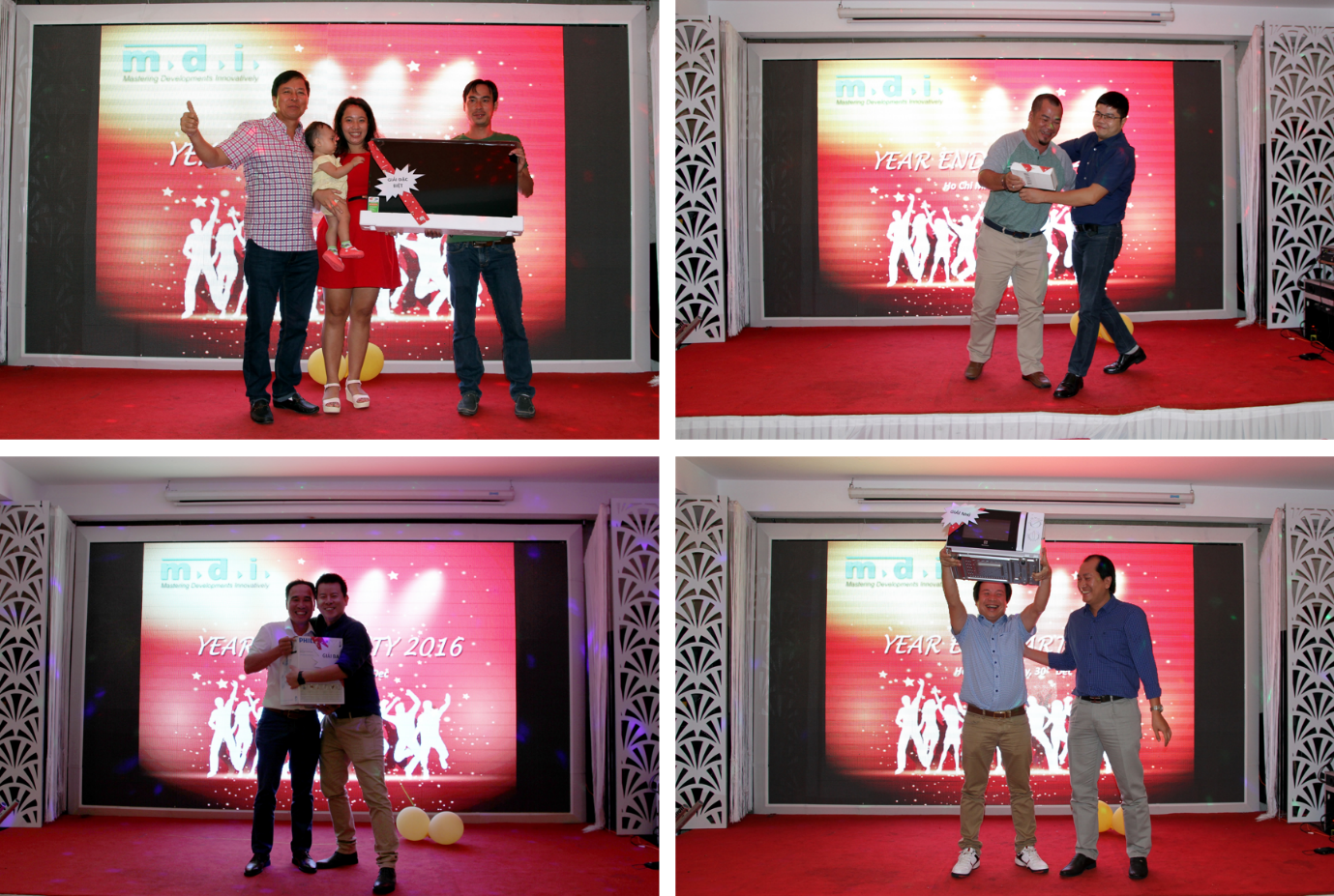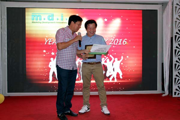 Tại buổi lễ, lãnh đạo của Công ty đã trao những phần quà ý nghĩa cho các cá nhân có những thành tích xuất sắc trong năm 2016. Đây là những gương mặt tiêu biểu, đã đóng góp công sức, lòng nhiệt huyết của mình xây dựng con thuyền MDI vững mạnh vượt qua mọi khó khăn, thách thức đi tới thành công.
