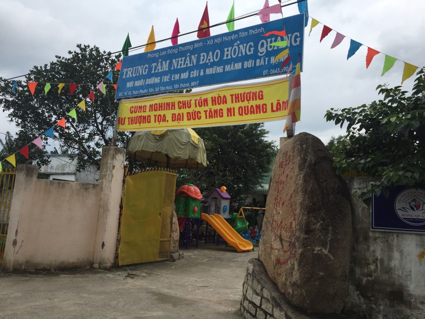 Trung tâm nhân đạo Hồng Quang (Chùa Hồng Quang) là đơn vị hoạt động vì phúc lợi xã hội, nơi tiếp nhận quản lý chăm sóc nuôi dưỡng và giáo dục đạo đức cho các trẻ em bị bỏ rơi, trẻ em khuyết tật... Hiện tại trung tâm đang nuôi dưỡng 8 bé sơ sinh, 18 bé 3-6 tuổi và 40 bé độ tuổi học cấp 1 đến cấp 2. Trong số các bé sơ sinh thì có 1 em bị sốt bại liệt và 1 bé bị não úng thủy, tình hình sức khỏe yếu.