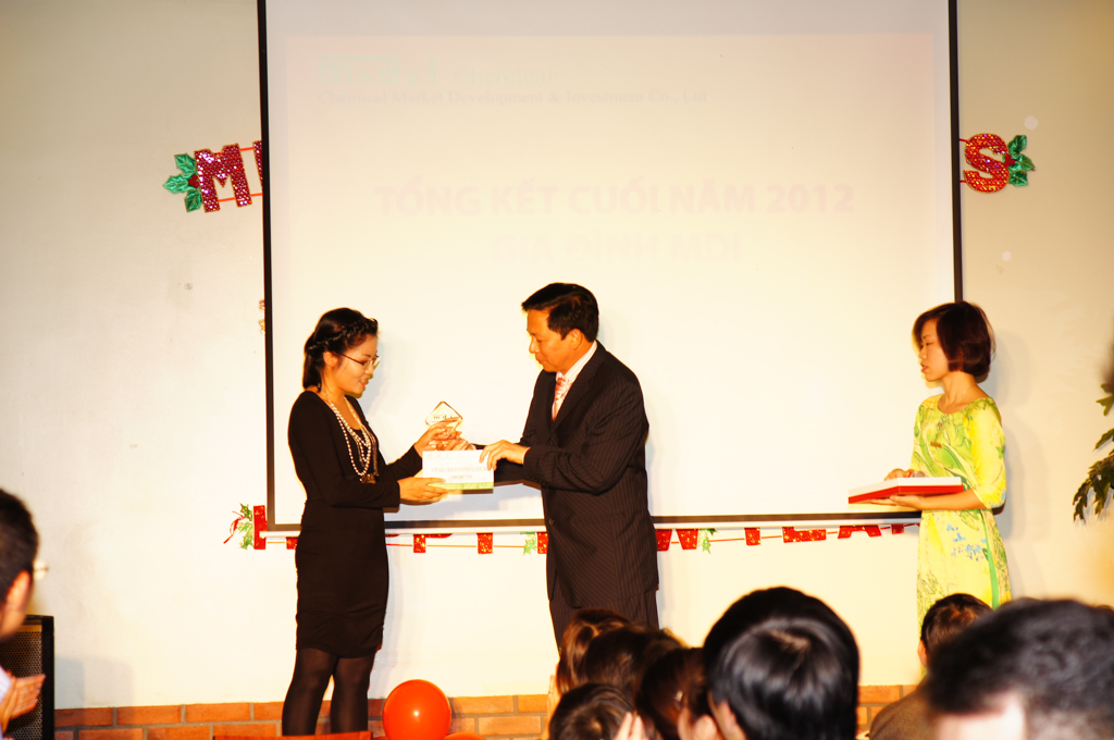 Lễ tổng kết cũng chính là dịp để tôn vinh những tập thể, cá nhân có thành tích xuất sắc trong hoạt động vì sự phát triển của Công ty. Tại buổi lễ, ông Trần Bình Ân đã trao những phần thưởng đầy ý nghĩa cho các cá nhân đã có những thành tích xuất sắc trong năm 2012. Đây là những gương mặt tiêu biểu, đã đóng góp công sức, lòng nhiệt huyết của mình cho Công ty, góp phần xây dựng con thuyền MDI ngày một vững mạnh hơn.