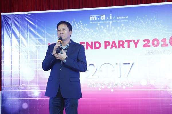 Để khai mạc buổi lễ, Ông Trần Bình Ân, Chủ tịch Hội đồng thành viên công ty MDI đã có bài phát biểu tóm lược kết quả hoạt động năm 2016 và đưa ra định hướng chiến lược phát triển trong năm 2017. Trong đó, ông nhấn mạnh: “Doanh số năm 2016 tăng trưởng và đạt mục tiêu chúng ta đã đề ra là 15%”. Ông cũng chúc mừng chi nhánh Hồ Chí Minh năm nay đã có bước đột phá với doanh số đạt được vượt kế hoạch, đó là sự nỗ lực thay đổi để đáp ứng kịp thời những mục tiêu, kế hoạch 2016.